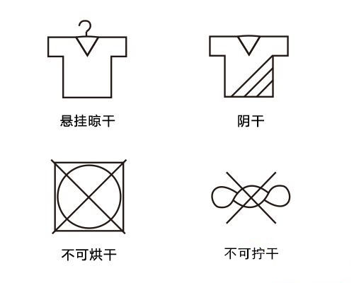 斗大的中文:“干燥后輕輕拍打、請與其它衣物分開洗滌”大家都能看懂,那上面五個圖形符號是什么意思呢?小編在這里告訴大家:它們分別是“洗滌水溫不能超過30°、不能漂白、懸掛晾干、不能燙熨、不能用滾筒烘干”的意思。